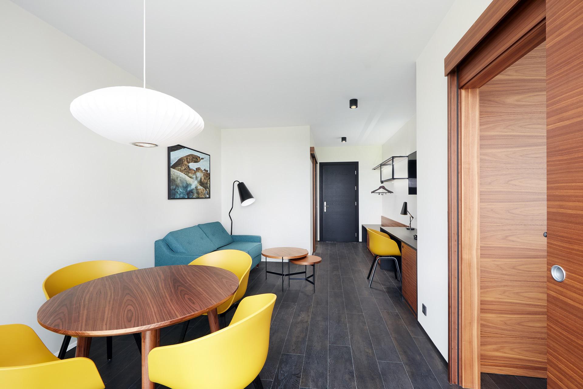Í nýbyggingu við hótel Örk sem opnaði í sumar eru meðal annars tvær glæsilega 55 fermetra svítur á efstu hæð og eru þær með frábærum hornsvölum og horngluggum.